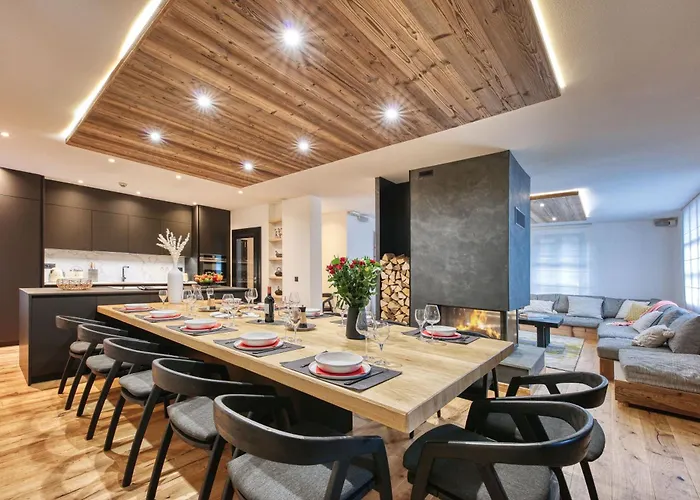 Die 7-Zimmer- Villa Le Marti Chamonix liegt ungefähr 4 Kilometer vom Refuge Albert 1er entfernt und bietet eine Sauna für ein entspannendes Erlebnis. Die Gäste vom Chalet in Chamonix im Viertel Argentière können Skifahren in der Umgebung genießen.